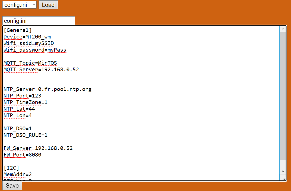 Le bouton 'Load' permet de charger un fichier depuis la mémoire du module, et le bouton 'Save' permet de sauvegarder le fichier dans la mémoire du module.