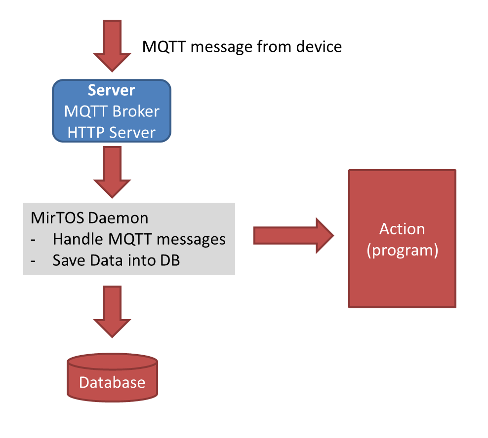 MirTOSd est le daemon qui tourne sur le serveur et qui nourrit la DB avec les message MQTT