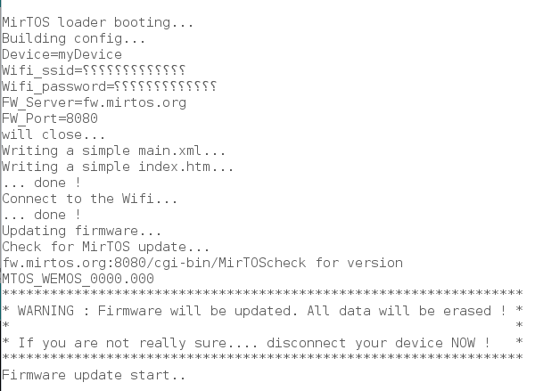 Solution simple pour démarrer et installer MirTOS sur un module, est d'utiliser le 'Mirtos_loader' qui permet de charger le firmware MirTOS et une configuration minimale.