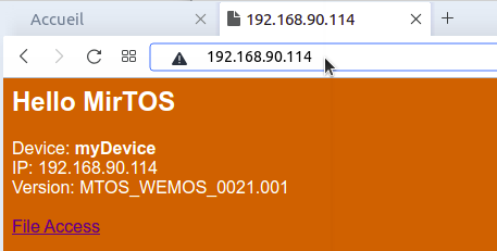 A la fin du BOOT de MirTOS, l'adresse IP du module est affichée.