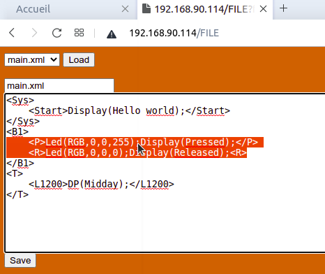 Sous la source d'événement <B1> correspondant au bouton 1, dans l'événement <P> (Pressed), ajouter la commande: