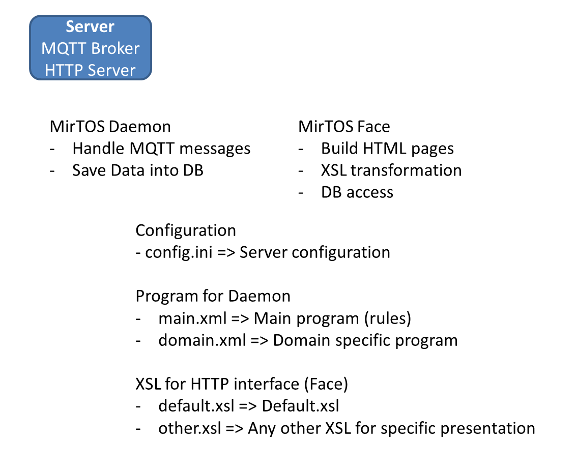 6) Configuration du serveur (deamon) -> config (log, domain, topic, rep des backup des modules...) et xml (main.xml)