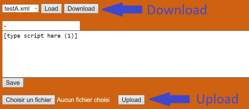 Pour sauvegarder un contenu comme fichier dans le module, il faut donner un nom de fichier, le contenu, puis cliquer sur 'Save'